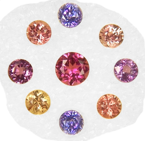 colors, great cutting, unheated, Ceylon "fancy" sapphires set.